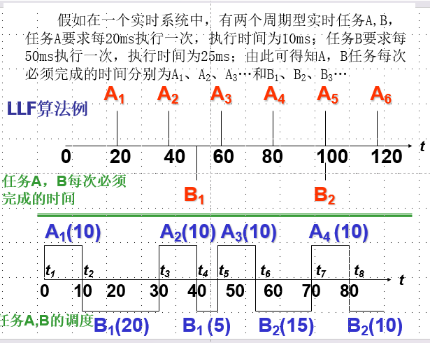 任务的抢占时机:当某后到任务的松弛度为0时,即获得最高优先级,立即抢占 CPU。其它时间就算发现后到任务的松弛度比之正在执行任务的松弛度要低但不为0,也不进行抢占。